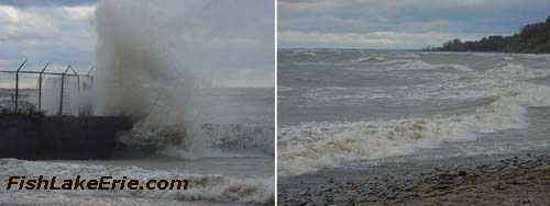 Monday Perch and Nasty Wednesday 10/13 & 15/2003 55 feet North west of Walnut was good (west 373 Loran). After catching a cooler of mostly Coho Salmon and some Steelhead headed north from Trout Run where a school of yellow perch were found around 11 AM. Fished for a couple hours and caught about a hundred keeping 75 nice sized ones. A goog mixed bag was found, of big and little yellow perch there. The lake views pictured is Wednesday 10/15/03 at 8:30 AM. A view of the wall at the pig pen Trout Run and also towards Walnut Creek. NASTY |